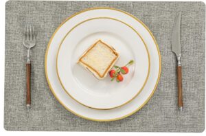 Upgrade your dining setting with these light grey, heat-resistant, waterproof vinyl placemats. Easy to wipe clean, reversible, and stylish, they add a modern and practical touch to your Christmas table decor.
